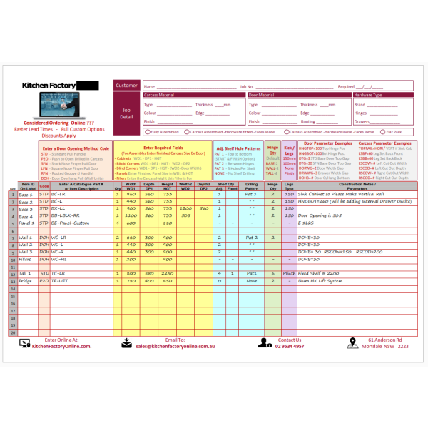 Kitchen Planner Help Login and continue Register and continue Continue As Guest Help << Back Cabinet Order Form Be the first to review this product Cabinet Order Form Availability: In stock No PDF Downloads KFO- Order Form Email to a Friend | Add to Compare Item Description Product's Review Product Tags Item Description Details Cabinet Order Form Product's Review Write Your Own Review Only registered users can write reviews. Please, log in or register Product Tags Add Your Tags: Add Tags Use spaces to separate tags. Use single quotes (') for phrases. CMS tab